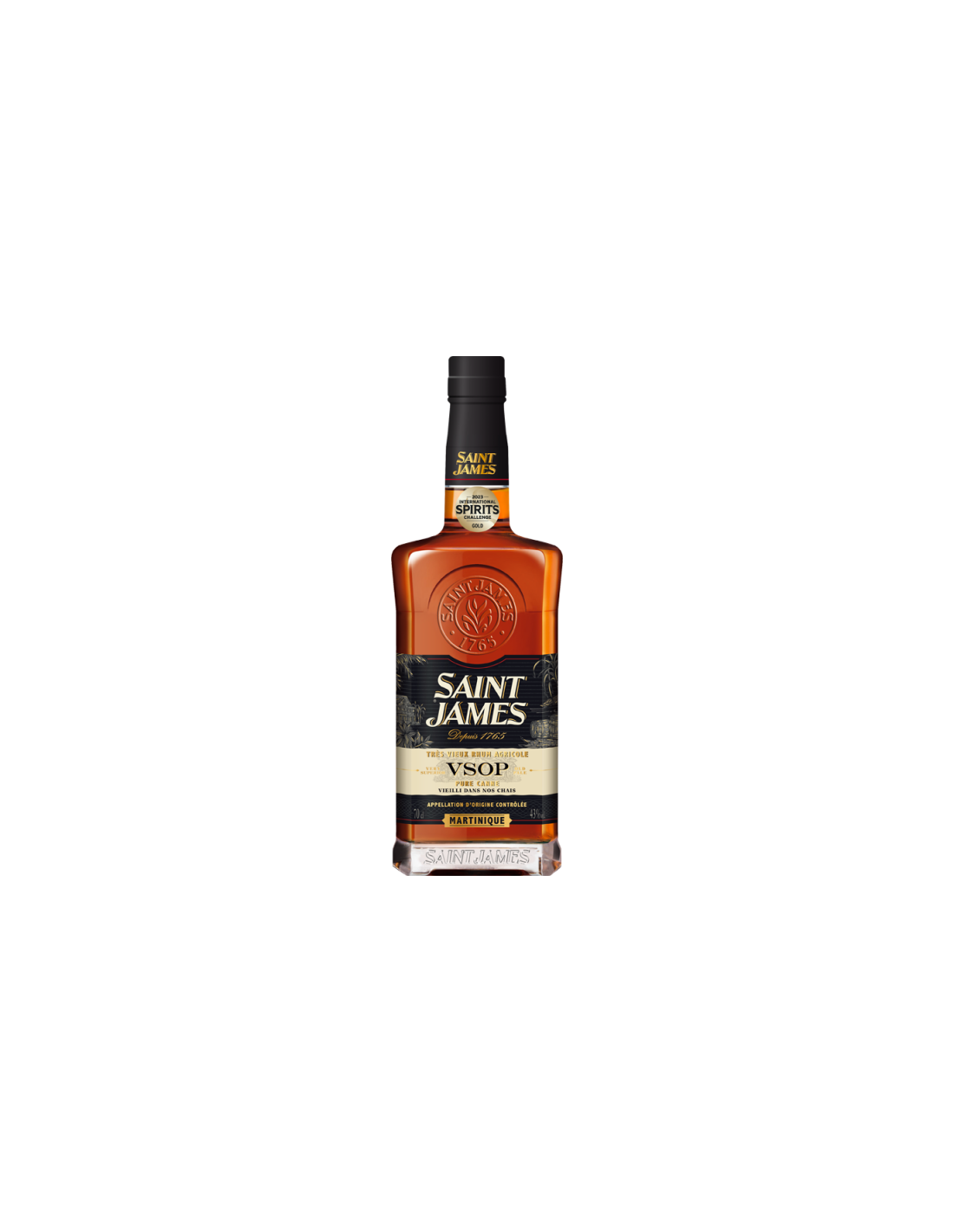 Vieilli dans nos chais minimum 4 ans en milieu tropical, ses notes torréfiées se mêlent remarquablement à celles épicées (vanille, cannelle). Un fond de très vieux rhum aux saveurs de Fruits confits qui enrobe l’ensemble. Disponible en coffret deux verres dégustation. Le Rhum Saint James VSOP a été récompensé à cinq reprises lors des derniers concours prestigieux.